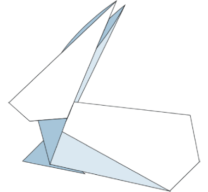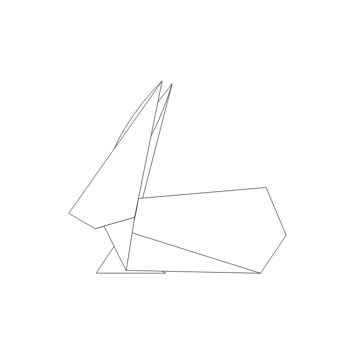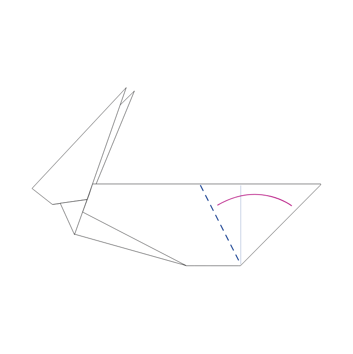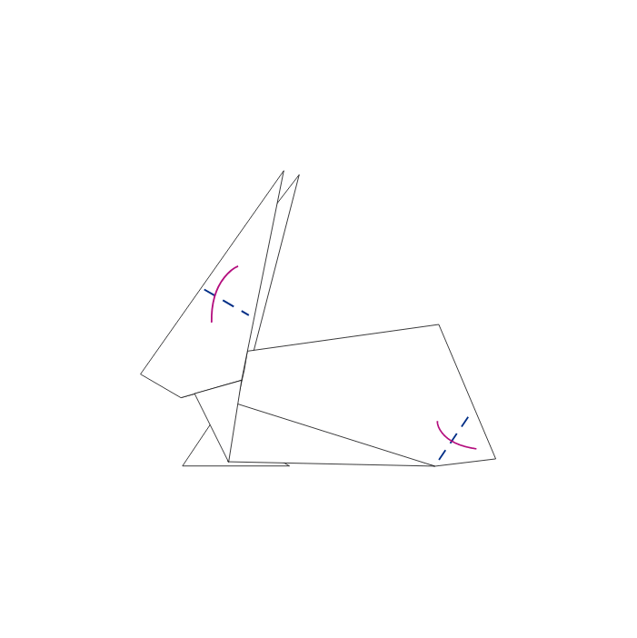 Voldi jänese tagumine osa mööda ülemist külge. Ava jänese tagumine osa ja voldi murdejoone järgi kolmnurgad jänese sisse.