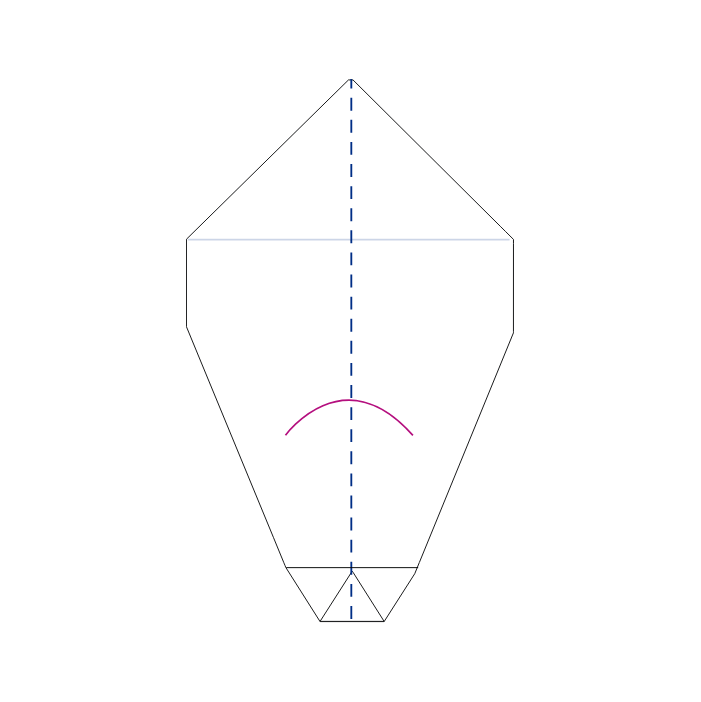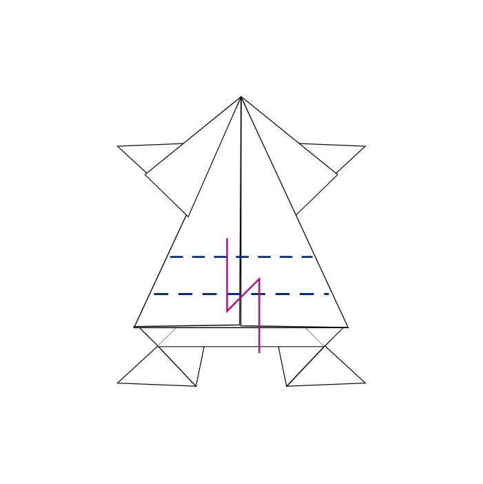 Voldi saba osas väikesed kolmnurgad sisse poole. Voldi kõrvadele murdejoon ja otse vaates tekita kõrvade sisse õhku