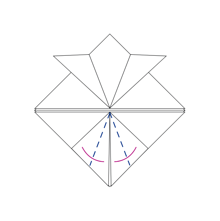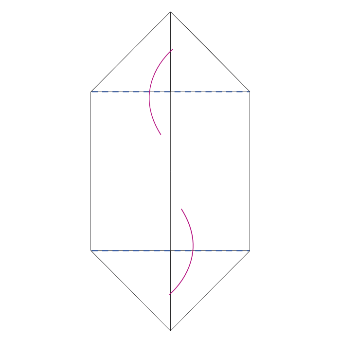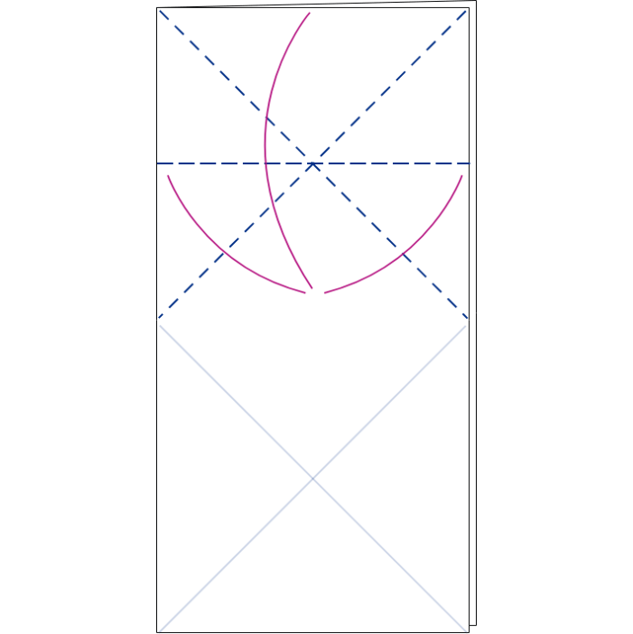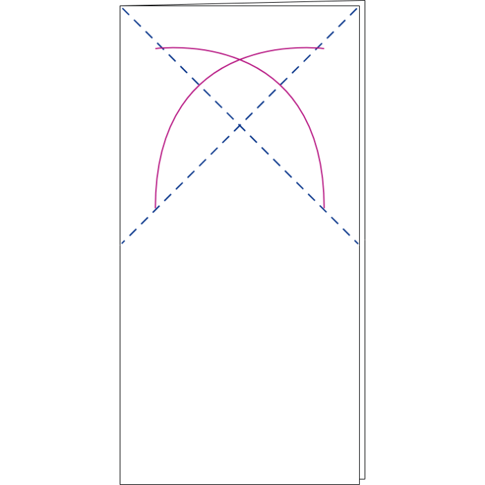 kolmnurgad sisse, tekitades rombi. Korda sama paberi ülemises osas.