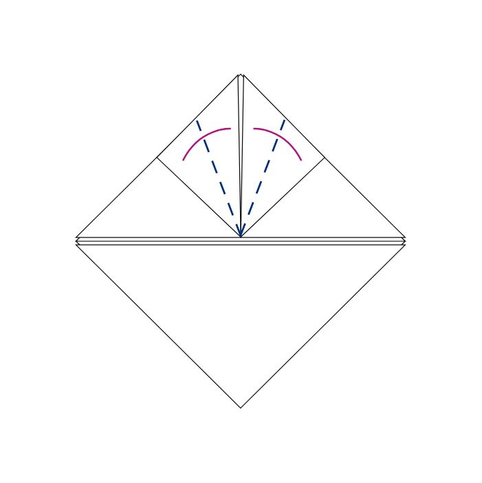 Keera kolmnurga pikim külg üles ja murra mõlemad nurgad paberi keskpunktist alla